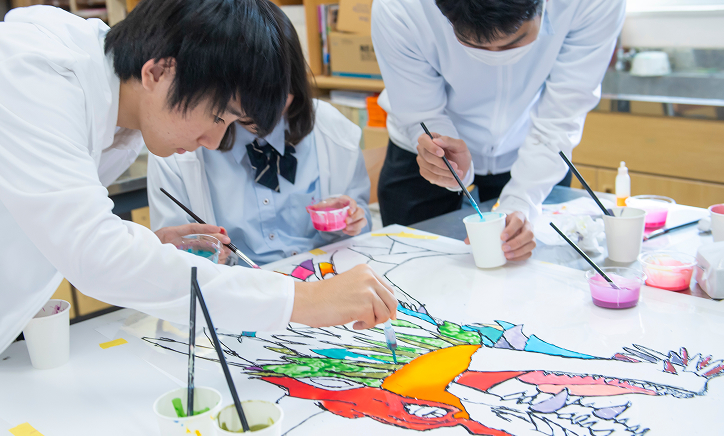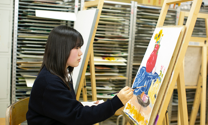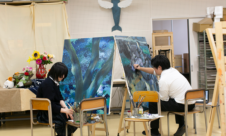 - 美術系大学への進学やSNSでの作品発信の力をスキルアップさせることが可能。基礎デッサンや描画力に加え、作品制作を段階的に学び、創造力を高めます。作品展や卒業制作展も開催し、個性を磨きます。