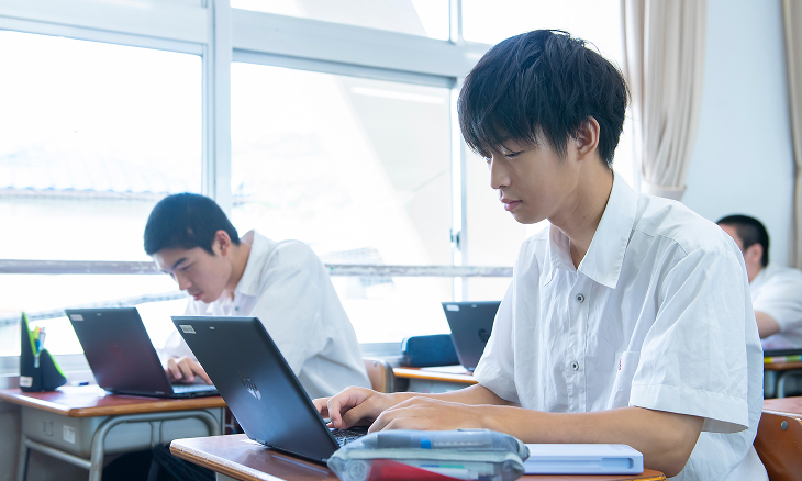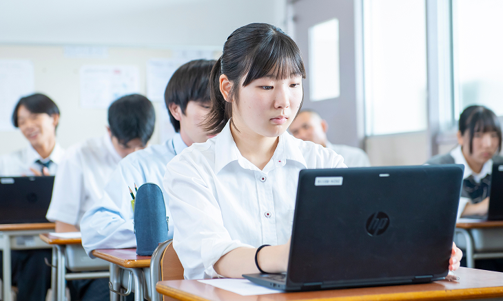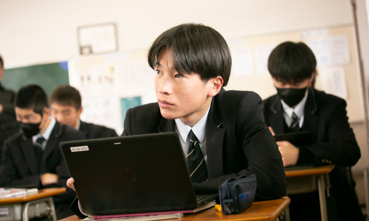 - 情報系資格の取得、プログラミング学習、探究学習等を通して、これからの社会で求められる「情報活用力」や「課題解決力」を育みます。情報社会において必要とされる知識やスキル、そして社会に積極的に関わる姿勢を身につけ、一人ひとりの希望に合わせた進路の実現を目指します。