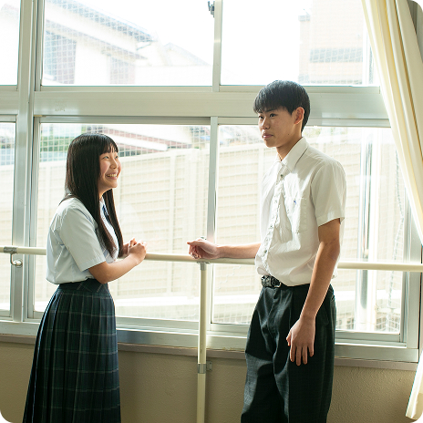 グランドが芝生で、学校の周りは緑豊かなのでゆっくりと落ち着いた環境で勉強できる。先生や友達との距離が近いので、すぐに相談できる。生徒だけでなく、教員もいきいきと明るいところ。