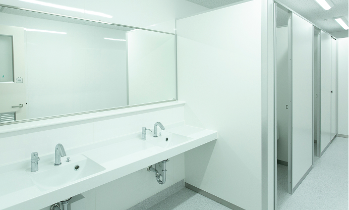 明るく清潔感のあるトイレは、全個室と多目的トイレにウォシュレットが完備されています。